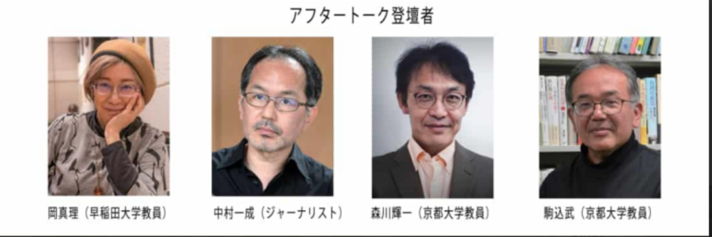 岡真理(早稲田大学教員)/中村一成(ジャーナリスト)/森川輝一(京都大学教員)/駒込武(京都大学教員)